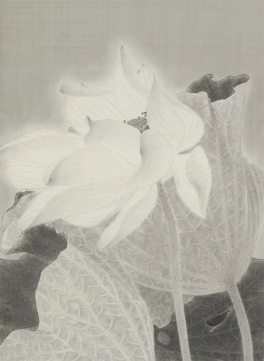 《百花同行 · 白莲》,纸本工笔,33×46cm,2022