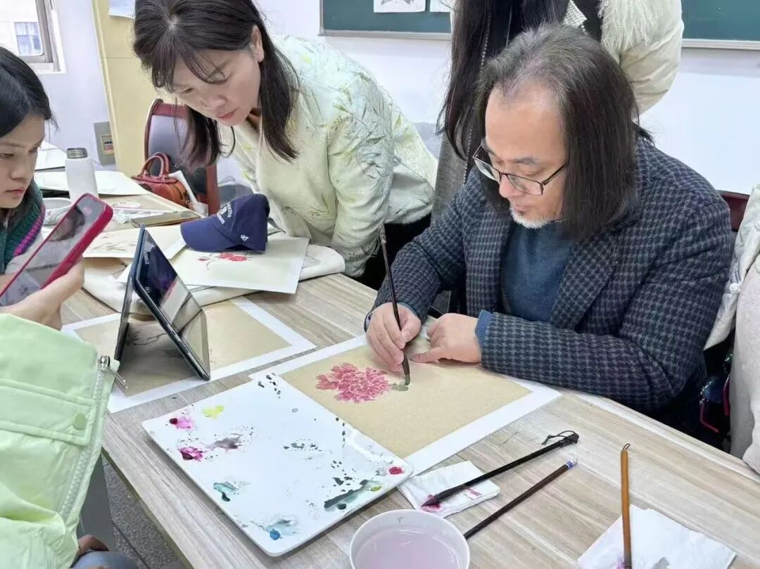 湖北美术学院中国画学院以湖北省一流本科课程《没骨花鸟画》为依托,开设《没骨花鸟画高级研修班(周末班)》(第四期),旨在传承和弘扬中国传统文化,满足社会对高层次艺术人才的需求,增强高校服务社会的功能。该课程从没骨花鸟画技法的系统与实践为切入点,由浅入深,解读历代没骨花鸟画经典作品,探讨传统艺术本源问题。该课程涵盖没骨花鸟画的不同表现手法、色彩运用、构图、造型理论等,同时也涉及写生与创作,培养学员对自然花鸟的观察力和表现能力,帮助学员将所学知识、艺术规律运用到实际创作中,创作出具有个人风格的没骨花鸟画作品。