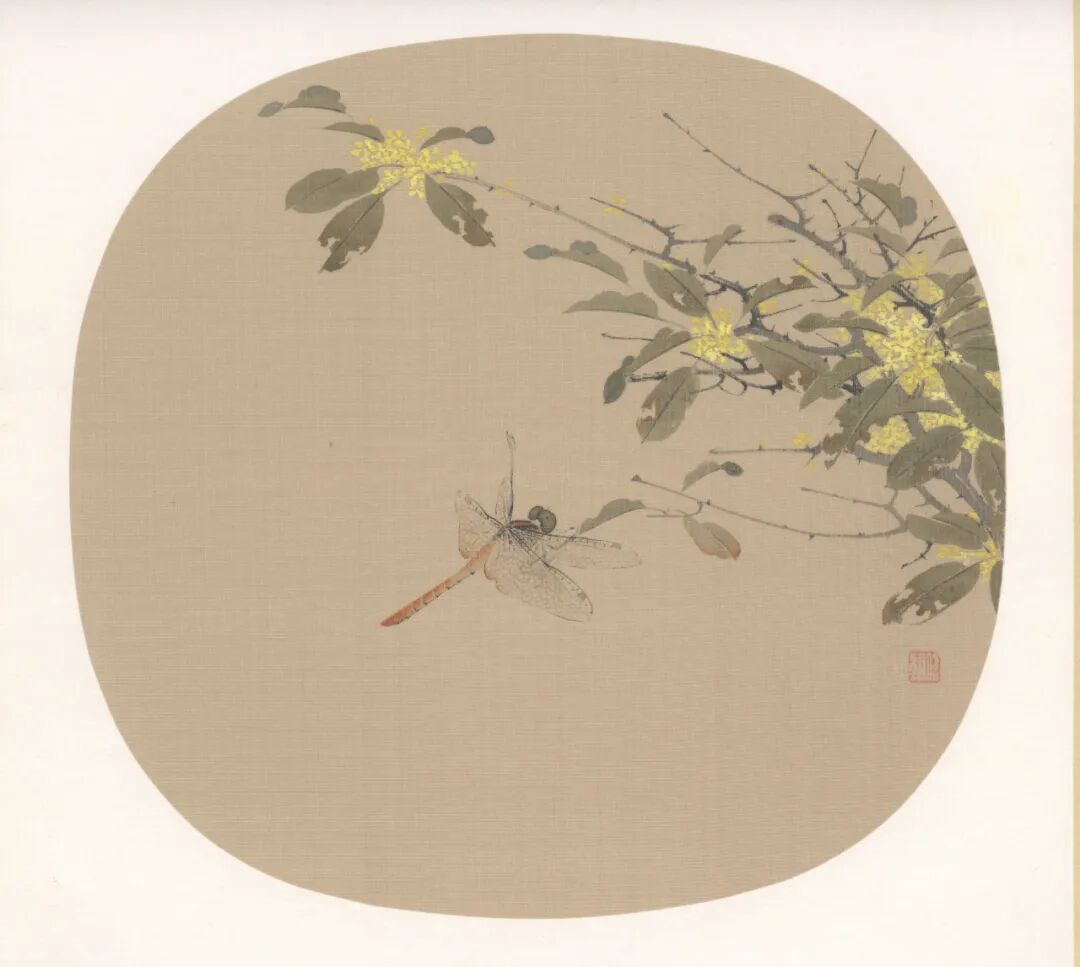 《桂花蜻蜓》, 绢本设色,28×27cm,2024