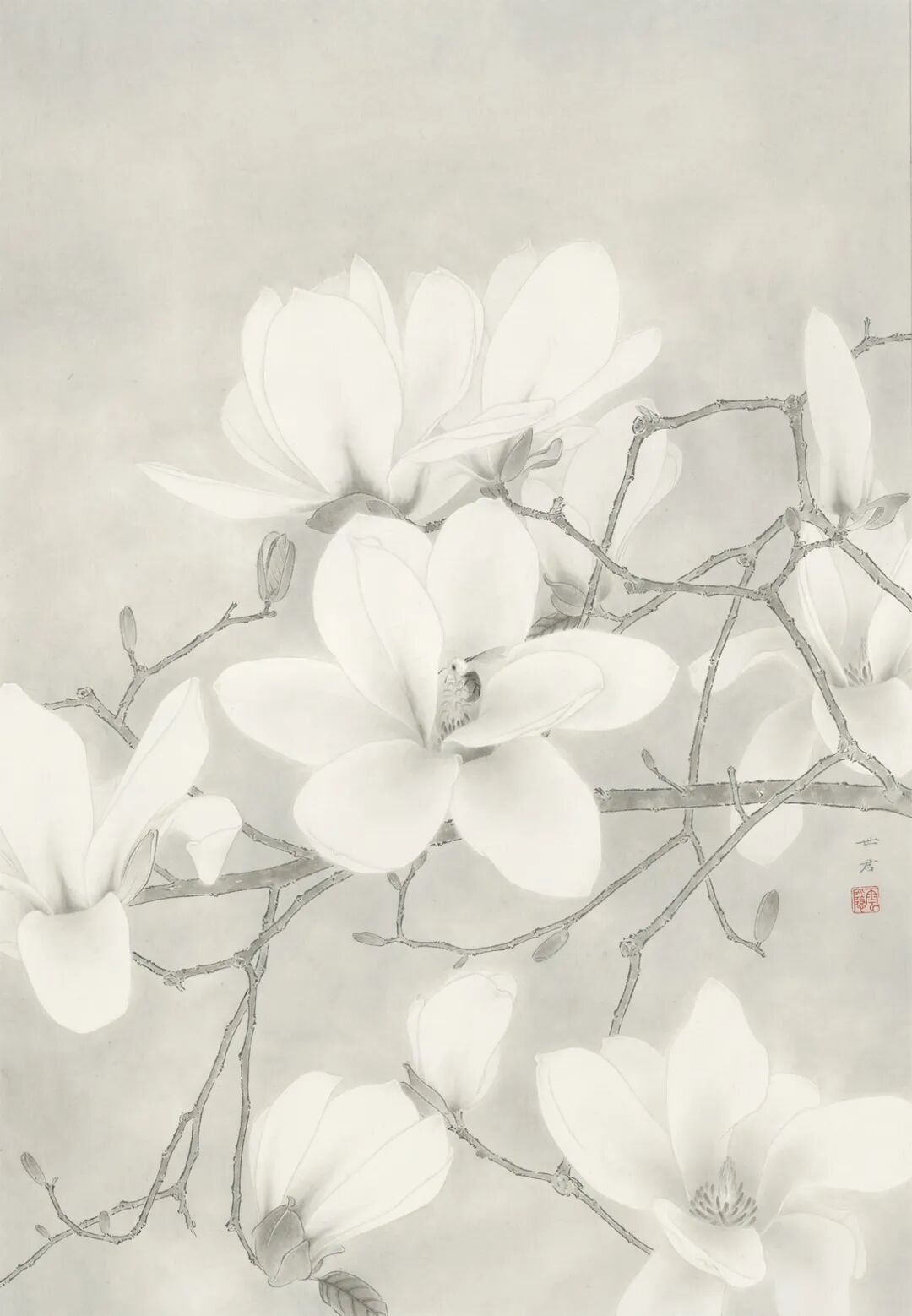 《百花同行 · 玉兰》,纸本工笔,33×46cm,2022