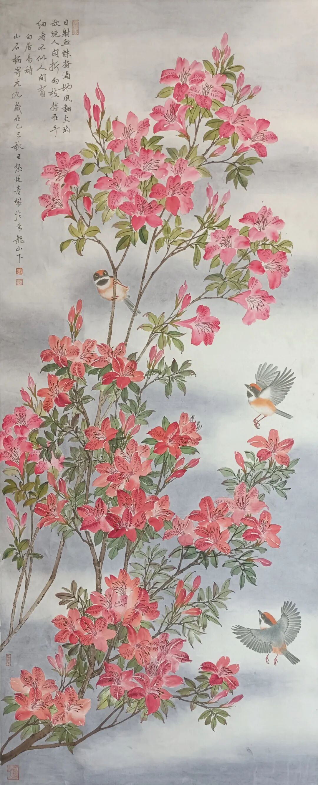 《映山红》,绢本设色,140×50㎝,2025