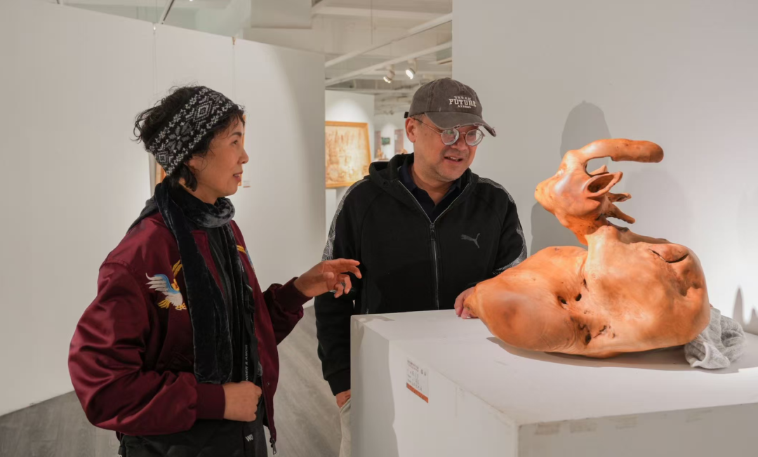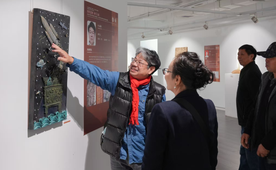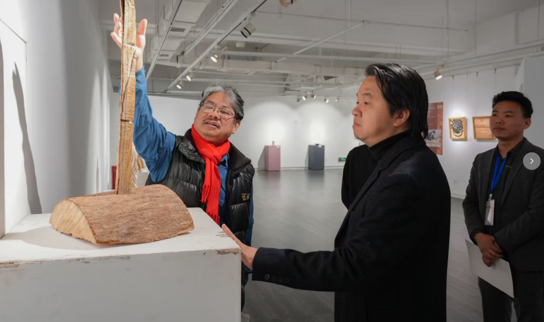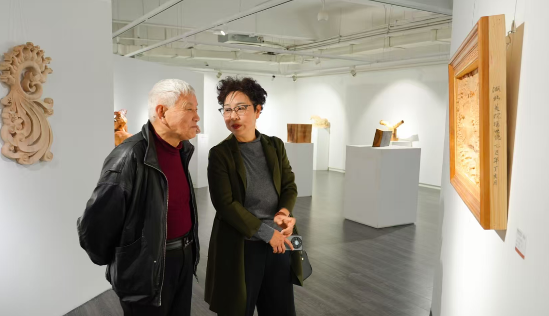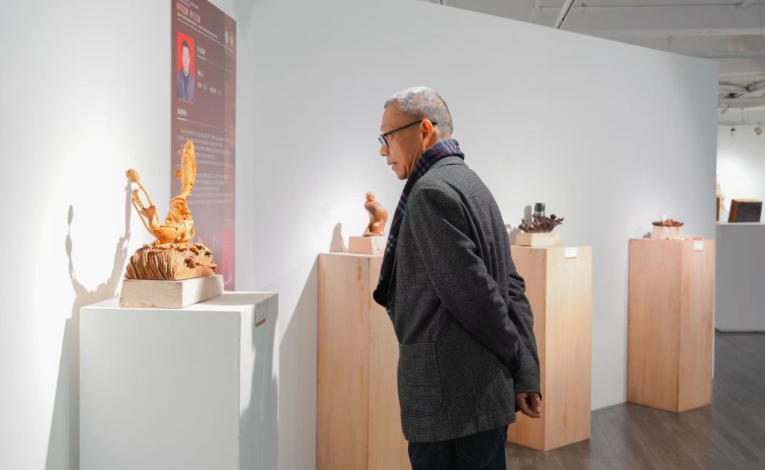 仪式结束后,大家移步至展厅。一件件精美的木雕作品,或古朴厚重,或新颖灵动,在灯光下诉说着“刀木相迎”的故事。嘉宾与观众们驻足于前,细细品味传统技艺与现代审美在方寸木料上的精彩对话。