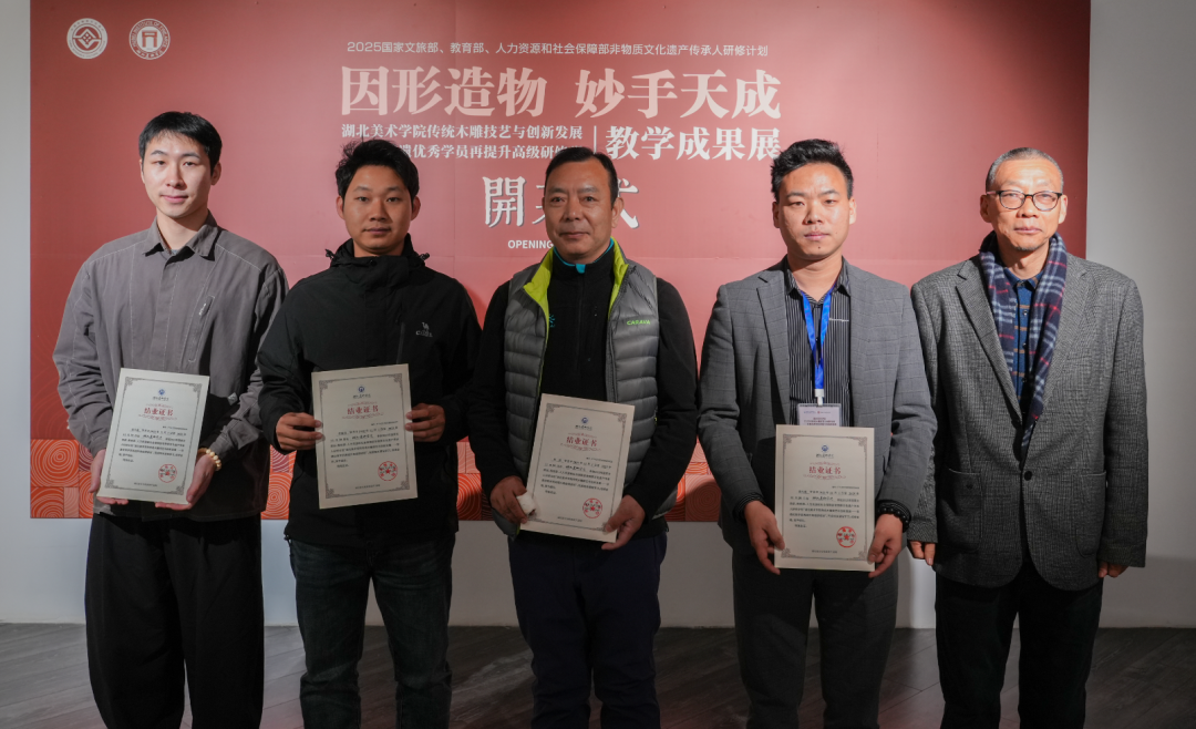 随后进行的优秀学员表彰环节,将仪式推向高潮。武汉木雕老艺人孙汉生与武汉木雕代表性传承人张静教授共同为柯瑞、刘长清、庹先军、周升文、杨世德、汪莉莉、戴均勇、杨佳奇颁发了优秀学员荣誉证书。