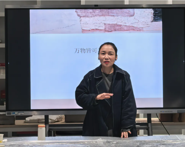 活动伊始,蒲美合教授以《万物皆可期(漆)》为题,带来了一场深入浅出的讲座。她从大漆的历史渊源与发展脉络讲起,系统介绍了这一古老媒材的特性与文化内涵,并通过展示精美的大漆艺术作品,让在场观众直观感受到大漆艺术的独特魅力与深厚的东方美学底蕴,为接下来的实践环节奠定了良好的认知基础。